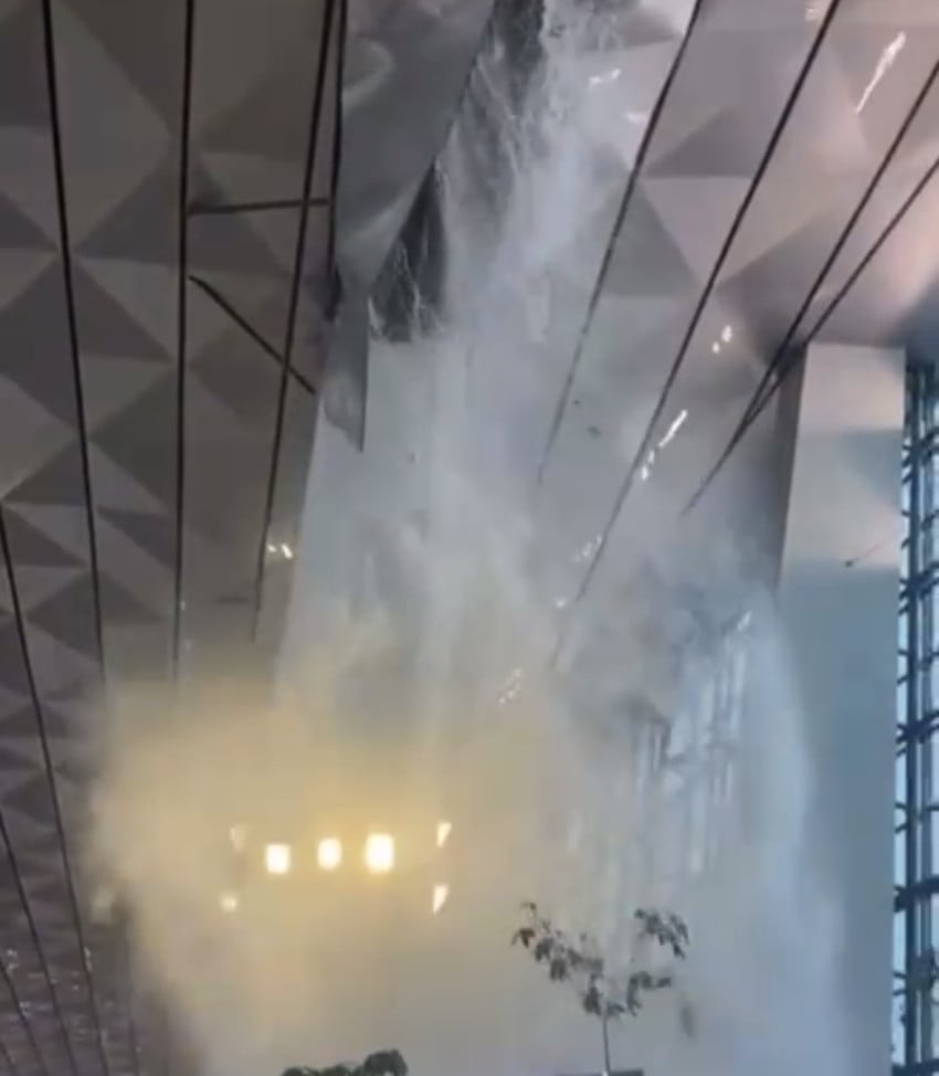 Atap Terminal 3 Gate 7 Bandara Internasional Soekarno-Hatta (Soetta) Tangerang, Banten jebol imbas hujan deras pada Senin (6/4/2026) hari ini. Foto/Istimewa